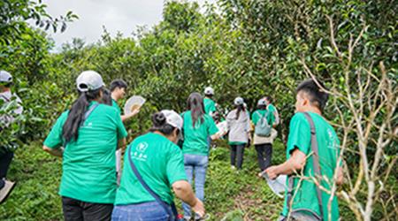 2022年7月12日,六大茶山20周年團隊拓展活動從賀開茶山行開啟。游茶山,探百年古茶樹,六山家人們一同深入茶園內(nèi)部。
